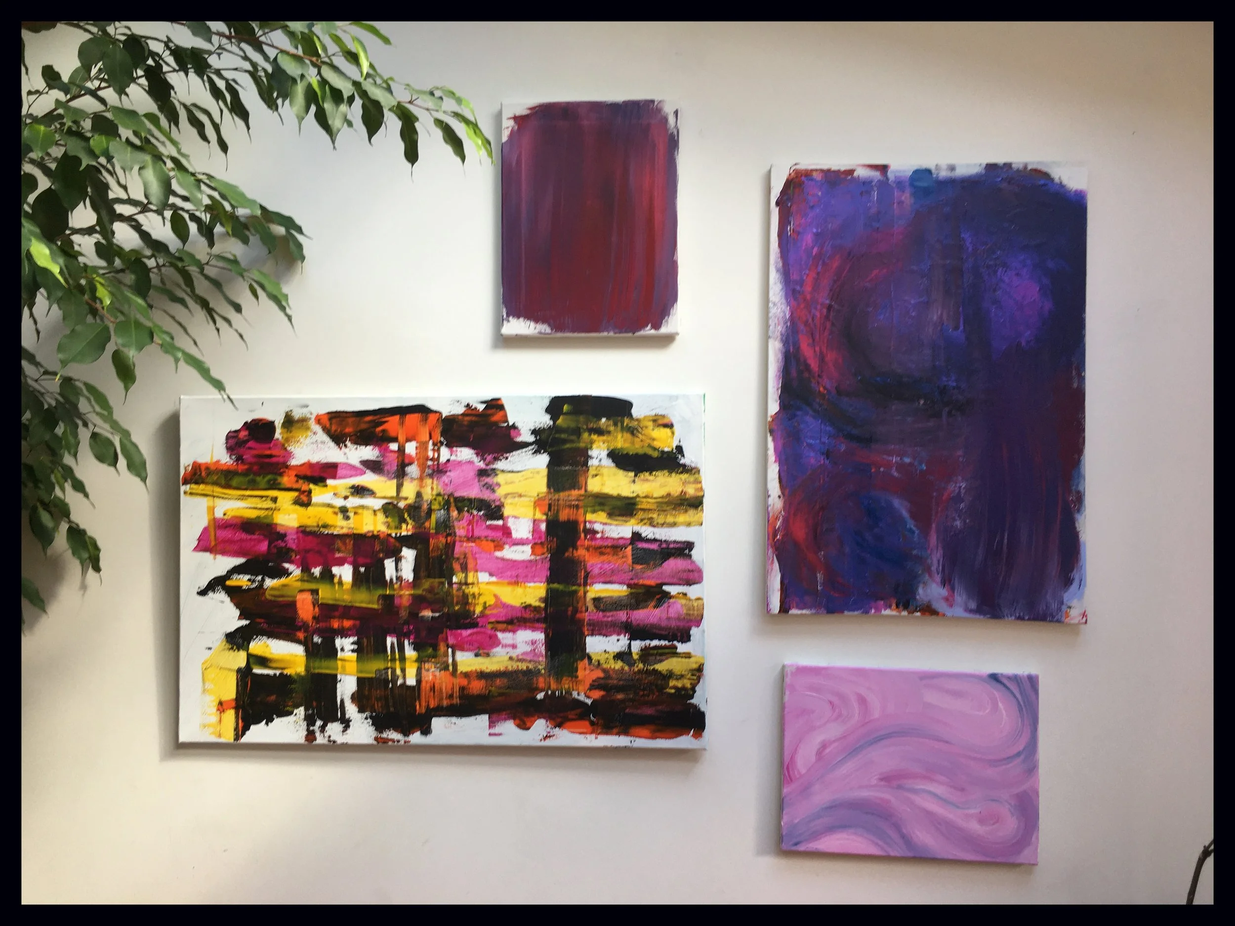 This can be on canvases, acrylic paper, newsprint, cardboard etc. Experimenting with textures & possibilities.